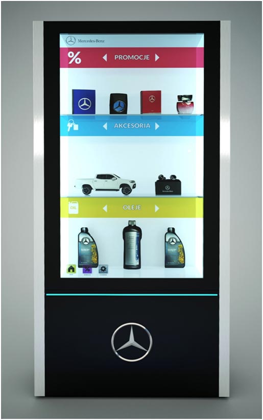 INTERAKTYWNY STÓŁ MULTIMEDIALNY LCD pełni funkcję interaktywnego, wielofunkcyjnego terminala udostępniającego szeroki zakres aplikacji i usług klientom obsługiwanym przez pracownika działu sprzedaży oraz klientom oczekującym na odbiór auta w dziale serwisu technicznego salonu samochodowego. Jest to innowacyjne urządzenie wspomagające obsługę klienta w zakresie prezentacji, konfigurowania i wyceny oferowanych modeli aut i akcesoriów, dostępu do bazy dokumentów klienta, dostępu do serwisów internetowych oraz zapewnienia klientowi rozrywkę aplikacjami ze Strefy Relaksu.