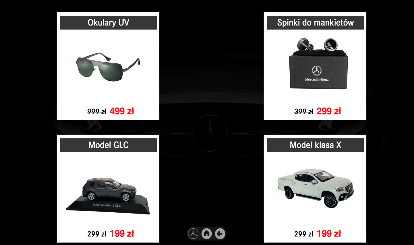Aplikacja służy do prezentacji akcesoriów samochodowych z aktualnej oferty producenta, Aplikacja pozwala na interaktywne przeglądanie akcesoriów wraz z wizualizacją, wyceną i opisem technicznym przy wykorzystaniu funkcji dotykowych ekranu stołu.
