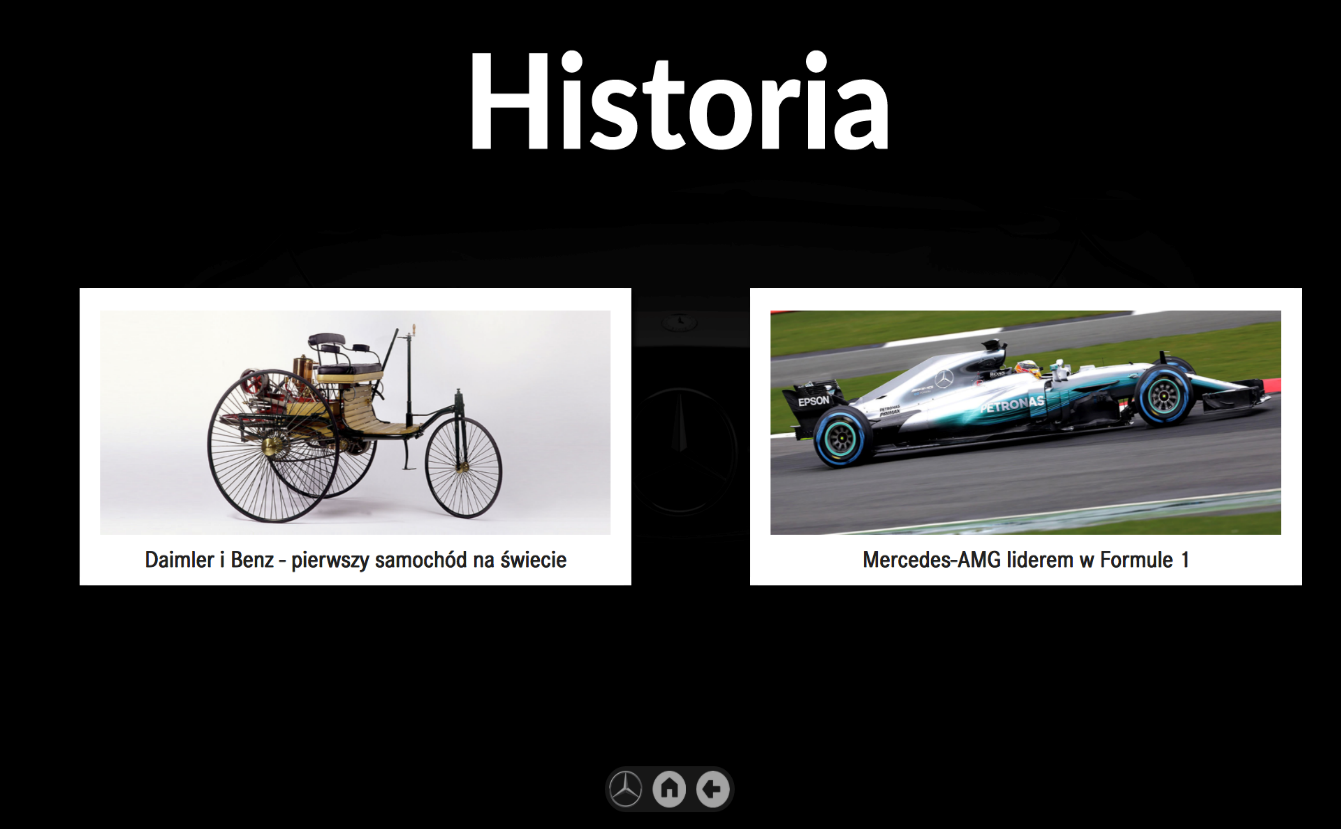 HISTORIA to multimedialna prezentacja, zdjęć, filmów i informacji dotyczących osiągnięć marki i jej historii pełniąc dodatkowo funkcje edukacyjne i rozrywkowe. Aplikacja odwołuje się do tradycji, historii, ewolucji technologicznej i sukcesów marki w kontekście rozwoju światowego rynku motoryzacyjnego. Aplikacja pozwoli na efektowne przeglądanie, przesuwanie, obracanie i skalowanie zdjęć na dotykowym ekranie za pomocą dłoni.