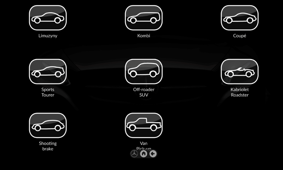 Aplikacja przeznaczona jest do prezentacji, konfiguracji i wyceny nowych modeli aut dostępnych w aktualnej ofercie producenta. Funkcje dotykowe ekranu pozwalają na interaktywne przeglądanie kategorii i modeli aut oraz indywidualnej konfiguracji wybranego modelu samochodu wraz z kolorem nadwozia.