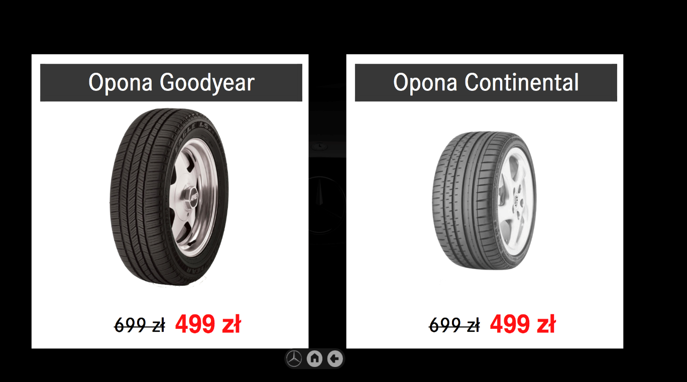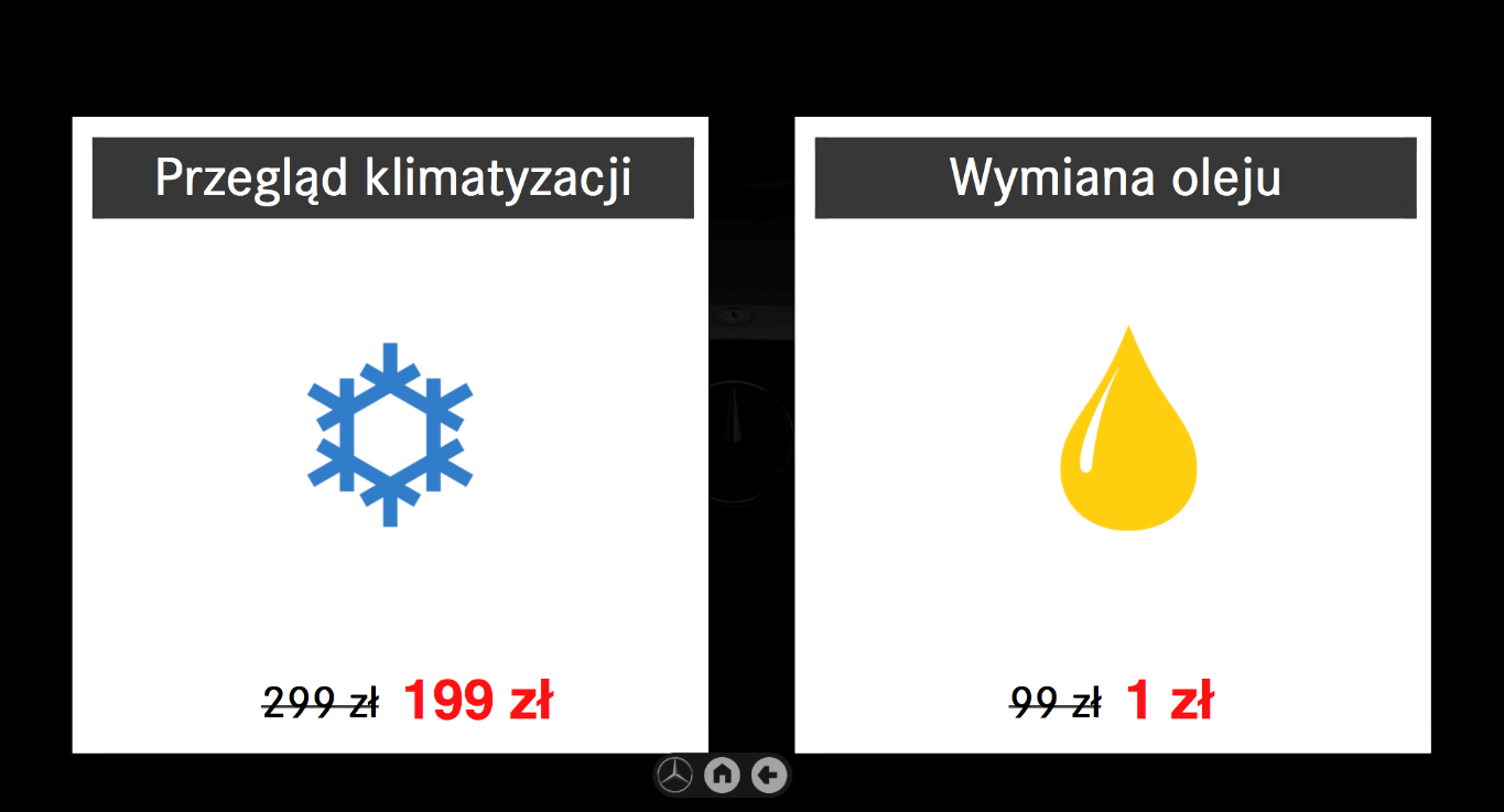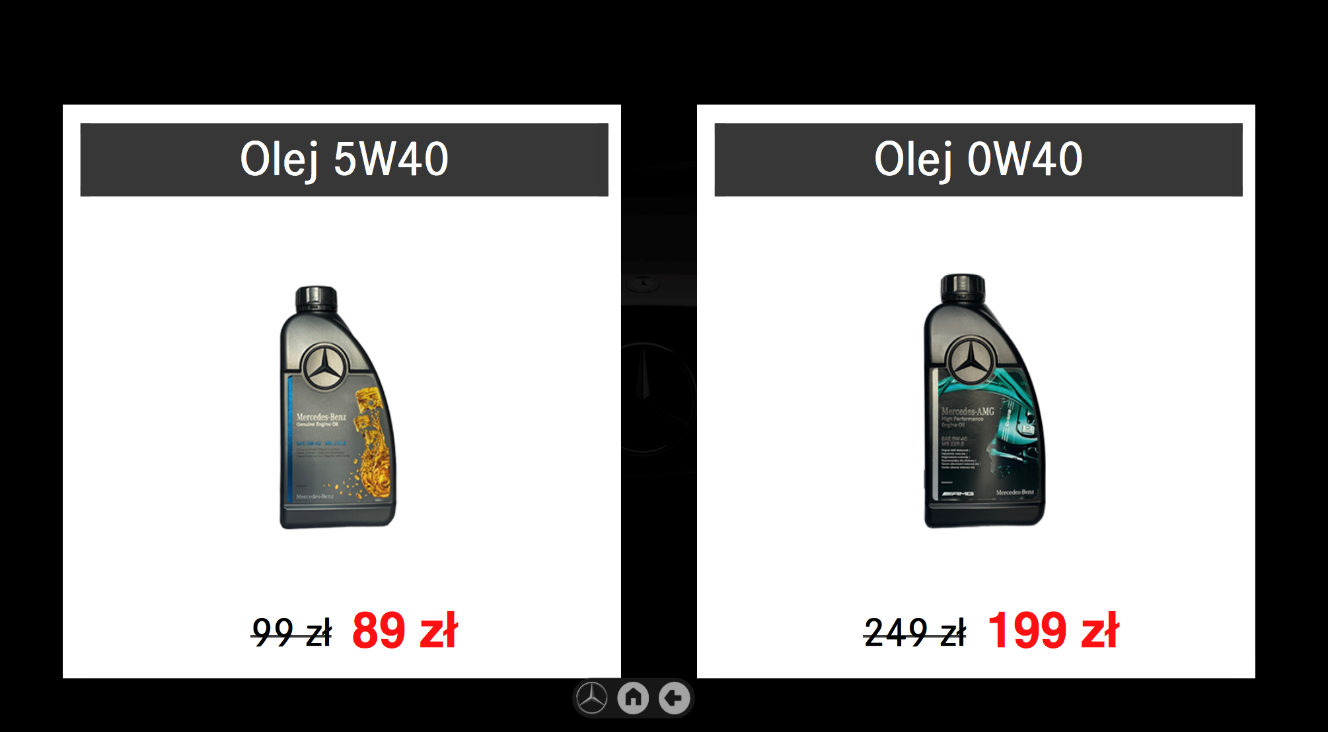 Aplikacja służy do prezentacji ofert promocyjnych producenta oraz lokalnego dilera samochodów. Obejmuje wyprzedaże sezonowe, oferty specjalne oraz usługi promocyjne. Aplikacja pozwala na interaktywne przeglądanie ofert promocyjnych wraz z wizualizacją, wyceną i ew. opisem technicznym przy wykorzystaniu funkcji dotykowych ekranu stołu.